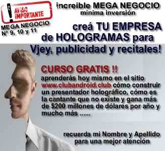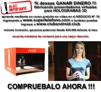 ARMA TU PROPIO NEGOCIO en el rubro software, NO SE REQUIERE EXPERIENCIA, CURSO GRATIS puedes proveer Publicidad Holográfica y otros 20 mega negocios más; COMPROBALO, mínima inversión