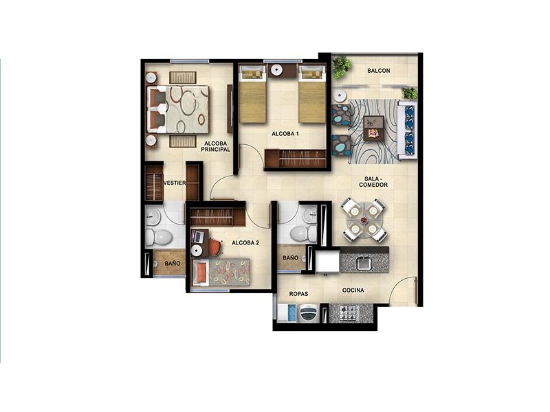 VENDO EXCELENTE APARTAMENTO CAMPESTRE LA FUENTE GIRÓN, SANTANDER $155.000.000El apartamento libre de hipoteca, 4 años de construido con un área de 65,75 m2 está ubicado en el 5° piso, esquinero con 3 vistas diferentes lo que le ofrece iluminación natural y ventilación permanente. La entrada principal con puerta en madera de 2 chapas y reja metálica. Pisos en cerámica. Consta de 3 alcobas todas con gran closet en Madecor, alcoba principal con vestier y baño privado. Dos baños con divisiones de baño y totalmente enchapados . Hall de alcobas amplio, sala comedor, balcón con vista a la piscina, cocina estilo americano, totalmente enchapada. Garaje amplio y cubierto, cuarto de depósito. 2 piscinas, salón social, cuarto juegos infantiles, cámaras de seguridad.