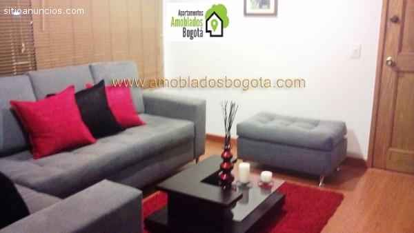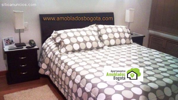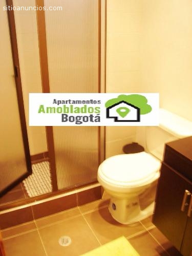 Primer piso alto exterior. 2 habitaciones cada una con cama doble y closet, la principal con LCD 32" y la secunda con tv 14”, sala comedor, un baño, cocina , zona de lavandería con lavadora y 1 parqueadero. SANTA BARBARA, 65 metros. $ 3300.000Alquiler excelentes apartamentos amoblados en Bogotá, Colombia, sin intermediarios. Tarifas especiales por días, semanas, meses. 1, 2 o 3 alcobas, sectores exclusivos en el norte. Sectores residenciales estrato 6, Santa Bárbara, Virrey, Santa Paula, Chico, y Cedritos, Cabrera, Chico Navarra. El precio incluye el pago de todos los servicios (agua, luz, teléfono, internet wi fi, tv cable, administración, parqueadero).