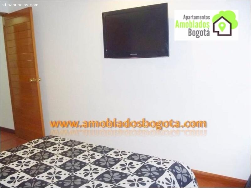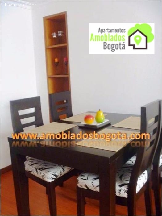 Quinto piso exterior. El apartamento tiene una habitación con cama doble, LCD 32" y balcón, un baño, sala comedor con chimenea, estudio con sofá-cama, cocina, zona de lavandería con lavadora. Chico, $2950000, 65 metros Alquiler excelentes apartamentos amoblados en Bogotá, Colombia, sin intermediarios. Tarifas especiales por días, semanas, meses. 1, 2 o 3 alcobas, sectores exclusivos en el norte. Sectores residenciales estrato 6, Santa Bárbara, Virrey, Santa Paula, Chico, y Cedritos, Cabrera, Chico Navarra. El precio incluye el pago de todos los servicios (agua, luz, teléfono, internet wi fi, tv cable, administración, parqueadero).Desde $2.600.000 TODO INCLUIDO.