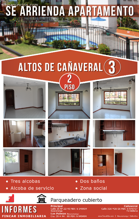 Apartamento en excelentes condiciones para habitar zona residencial tranquila acceso rápido a diferentes centros comerciales, a la salud, en un 2 piso, Parqueadero cubierto, Tres alcobas, la alcoba principal tiene baño privado, más una Alcoba de servicio, un (1) baño general, la zona social bien equipada con su GYM de alto rendimiento, piscina, juegos para los niño, salón social amplio, excelentes condiciones.