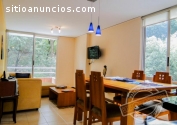 El salón con comodidad para tres personas, da paso a la zona de comedor con capacidad para cuatro personas, la cocina es totalmente equipada, tiene una barra de estilo americano y acceso a un pequeño espacio de limpieza. La habitación principal tiene un baño privado y closet empotrado. Además, ofrece una amplia y cómoda biblioteca para disfrutar de un buen libro, estudiar o trabajar desde la #vivienda.