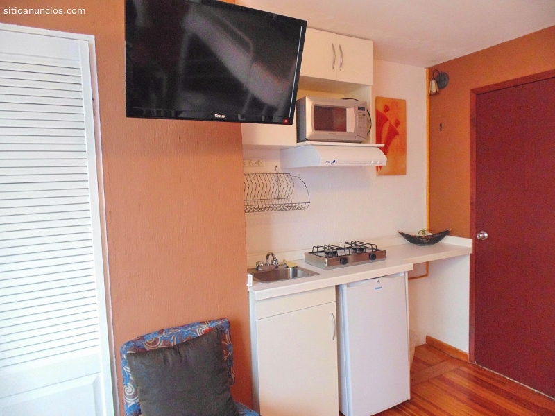 Stay in a fully furnished hostel with the comfort of an apartment, youYou choose the time of your stay which can be per night, week or month. The suite has a double bed, a kitchen equipped with a microwave, a minibar, kitchen utensils, dishes and a