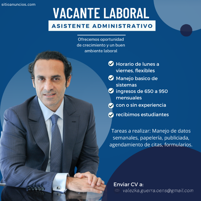 Buscamos colaboradores con o sin experiencia para un rol de teletrabajo, gestionando bases de datos, registros y controles desde la comodidad de tu hogar. Ofrecemos una jornada parcial de lunes a viernes, ideal para quienes buscan un equilibrio entre trabajo y vida personal. Ingresos aproximados entre $650.000 y $900.000 mensuales, sin sueldo fijo. Requisitos mínimos para postularte:Personal con o sin experiencia.