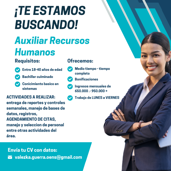 Compañía en expansión está en búsqueda de personal proactivo y dinámico, para realizaractividades como: publicidad, selección y manejo de personal entre otras actividades.