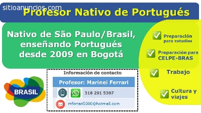 Profesor Nativo de Sao Paulo - Brasil - dicta clases de portugués en Bogotá.Dictando clases de portugués en Bogota desde 2009.