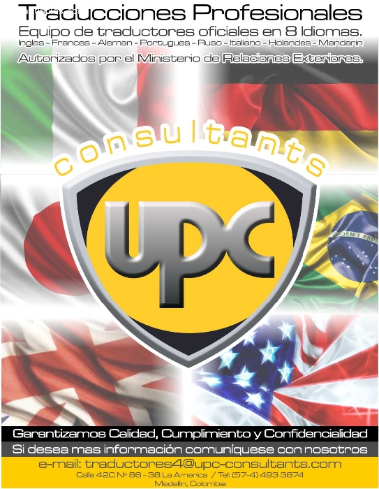 Nuestro equipo de traductores y nosotros UPC Consultants garantizamos un excelente resultado final; con un alto grado de CONFIDENCIALIDAD de todos los documentos que recibimos, los traductores están registrados en el ministerio de relaciones exteriores.Llama ya! Y recibirás una completa asesoría.