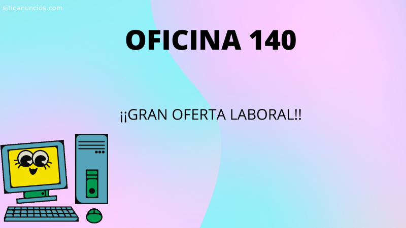 Empresa en expansión solicita personal mayor de edad para laborar desempeñando actividades básicas en el área de marketing y publicidad. Se labora medio tiempo de lunes a viernes con ingresos aproximados de 600.000. Interesados comunicarse al siguiente número y preguntar por la oficina 140 3213042799 o enviar su hoja de vida al siguiente correo selecciondepersonal140@gmail.com OFICINA 140
