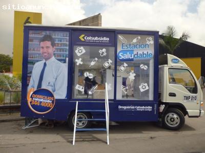 Construcción de estructuras publicitarias para vehículos. Fabricamos vallas para camionetas, motos, camiones, vitrinas y oficinas móviles.