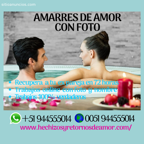 Realizo amarres de amor, hechizo para retornos de ex pareja, baños de florecimiento, lecturas de carta, tarot, videncia que te ayuden a cambiar tu futuro atrayendo riqueza y fortuna. Hago rituales fuertes para el amor que llegan a la mente y el corazón de la persona que amas, con una foto y nombre tendrás a la persona que tanto deseas a tus pies. Los trabajos que realizo son muy poderosos nadie los podrá romper, ya que trabajo con magia potente que son eternos o temporales depende de lo que me pidas.Comunícate hoy mismo atención las 24 horas.