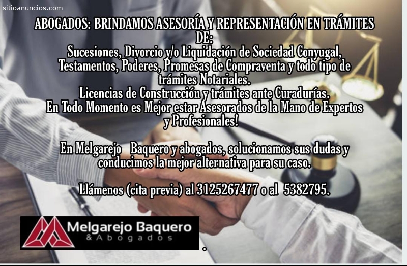 MELGAREJO BAQUERO & ABOGADOS: Nuestra firma lleva proceso civiles, de familia como sucesiones, divorcios, unión marital de hecho, fijación de cuota alimentaria o en su defecto el aumento, declaración de paternidad, custodia, interdicciones, inhábiles y demás.en temas comerciales, civiles como procesos ejecutivos ( cobro de títulos como: letras, cheques, facturas y demás) temas administrativos, estos procesos son llevados ante su respectiva jurisdicción.