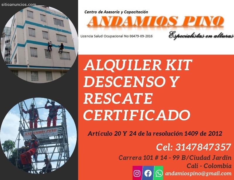 Alquiler kit de descenso y rescate certificado para trabajo en alturas en CaliCel: (314) 7847357 Cali Colombia