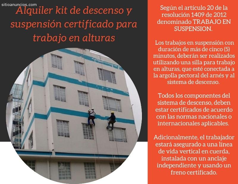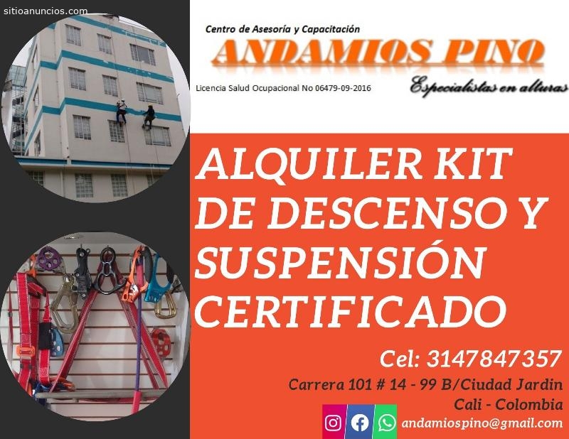 - Alquiler kit de descenso y suspensión certificado para trabajo en alturas en Cali