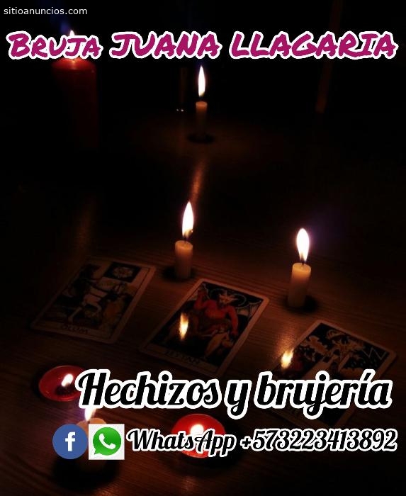 Soy la Bruja JUANA LLAGARÍA experta en solucionar problemas de amor, realizo oraciones, soy curandera, realizo hechizos, retiro maleficios causados por la magia y la brujería. Le devuelvo su felicidad y tranquilidad, le pongo el ser amado a sus pies suplicándole y rogándole, le devuelvo la felicidad a su hogar, realizo todo tipo de amarres: amarres con magia negra, amarres para personas del mismo sexo, amarres eternos, amarres por el tiempo deseado, amarres sexuales y amarres matrimoniales.Hechizos para la buena suerte, dinero y amor