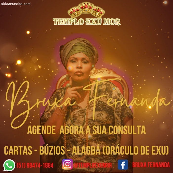 Bruxa Fernanda não apenas oferece consultas espirituais, mas soluções completas para todos os aspectos da sua vida. Quer se trate de uma questão amorosa complicada, de proteção espiritual ou de alcançar seus sonhos, Bruxa Fernanda tem a resposta e o poder para resolver.