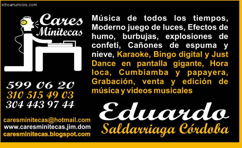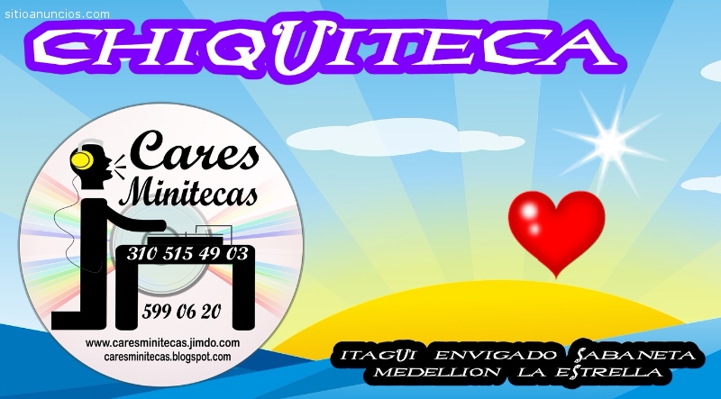 CHIQUITECAS: Una verdadera rumba infantil animada por un Dj, conocedor del gusto, la dinámica y la música de este público, igualmente utilizando el vídeo se ambientará dicha rumba con actividades y concursos proyectados en pantallas gigantes o tv, moderno juego de luces inteligentes, rítmicas, laser, neonicas estrobicas, máquinas de humo, confeti, nieve, burbujas y espuma.Dar ctrl+click para ver el video