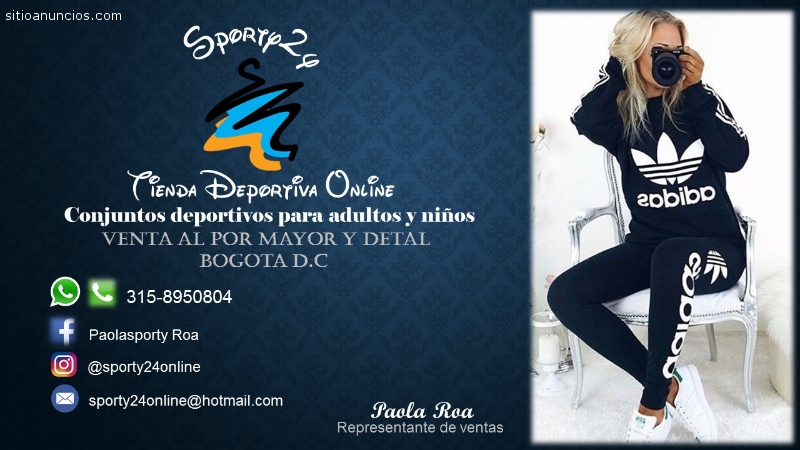 SOMOS TIENDA VIRTUAL PRECIOS ESPECIALES A MAYORISTAS LUNES A DOMINGO DE 6 AM A 11 PM ESTAMOS EN BOGOTA ? ? NO OLVIDES SOLICITAR TU SERVICIO PAGO CONTRA ENTREGA EN LAS DIFERENTES LOCALIDADES ? AHORA RECIBIMOS TUS PAGOS POR EFECTY ? RECIBIMOS TODAS LAS TARJETAS DE CRÉDITOMAYOR INFORMACIÓN 3158950804 #BOGOTA ? FACEBOOK: PAOLASPORTY ROA