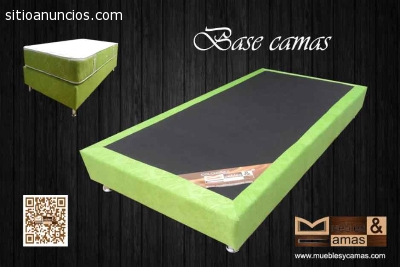 ** VÁLIDO HASTA AGOTAR EXISTENCIAS ** Base cama sencilla de 100*190 antes $ 210.000 AHORA $130.000. Base cama semi-doble 120*190 antes $ 230.000 AHORA $140.000 Base cama doble 140*190 antes $ 250.000 AHORA $140.000 Base cama divididas 140*95 / 120*95 antes $ 310.000 AHORA $180.000 las 2 bases ENTREGA ES INMEDIATA !!! * Características * Material: Madera pino canadiense inmunizado *Tendido con listones de madera pino de 8 cm de ancho por 2 cm de espesor. *Largueros con listones de madera pino de 2 cm de ancho por 2 cm de espesor. *Esquinas en palo de pino de 6*5 cm de espesor con la forma adecuada para instalarlas patas del sommier. *Lamina de peldar que aísla la superficie de la estructura de madera, brindando firmeza y comodidad. ** Pata metálica / o si desea Pata en madera incrementa $12.000 por base cama, 24 MESES DE GARANTÍA directamente con MUEBLES Y CAMAS tela: micro fibra o si desea en prana (imitación cuero) incrementa $10.000 por base cama ** Colores disponibles : BLANCO, NEGRO, VERDE,CAFÉ, AZUL, FUCSIA, MORADO, BEIGE -> ¡¡NO INCLUYE ENVÍO!! ... Transporte en la ciudad de BOGOTÁ $ 25.000 Pesos adicionales.Página web: