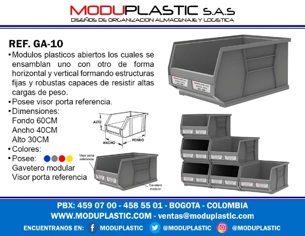 GAVETEROS MODULARES ABIERTOSEste gavetero lo puede armar como desee, es ideal para llevar su inventario de manera eficiente y ordenada. Son diseñados para resistir el trabajo pesado. Disponibilidad en diferentes tamaños y colores como lo son ( amarillo, azul, negro, rojo gris).