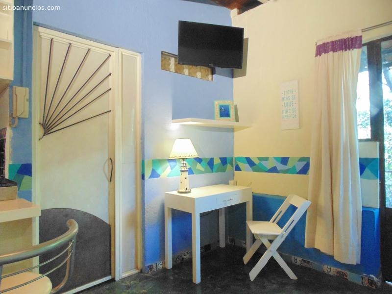 Baño completo, muebles, sillones, mesa, desayunador, microondas, frigobar, LUZ AGUA GAS E INTERNET incluidosServicio de Limpieza incluido