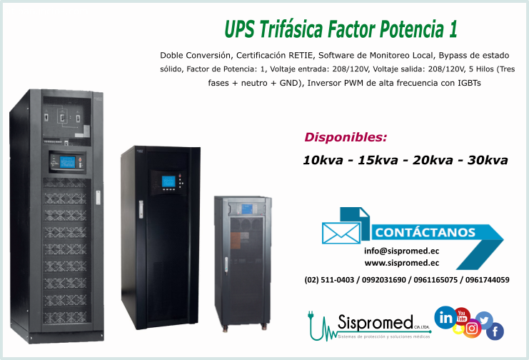 UPS Trifasica de 10kva, UPS trifasica de 15kva, UPS Trifasica de 20kva, UPS Trifasica de 30kva, entrega inmediata.El precio colocado hace referencia al UPS trifasica de 10Kva y es mas IVA.