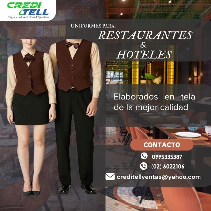 En CREDITELL nos especializamos en confeccionar uniformes de alta calidad para restaurantes y hoteles como mandiles, delantales, blusas, camisas, cofias, chaquetas, chaquetillas, faldas, pantalones entre otras prendas.Nuestros diseños exclusivos y telas de primera garantizan una imagen profesional y elegante para tu equipo. ¡Contáctanos para más información!