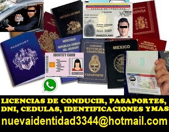 Documentos de alta calidad, pasan cualquier control, todos registrados y verificables online, hacemos Pasaportes, VISA, DNI, cedula de identidad DE CUALQUIER PAIS DEL MUNDO, FISICOS Y DIGITALES, licencias de conducir nacional e internacional, acta de nacimiento, acta de matrimonio, acta de defuncion, enviamos a cualquier pais, para hablar por whatsapp escribe a mi correo:nuevaidentidad3344@hotmail.com