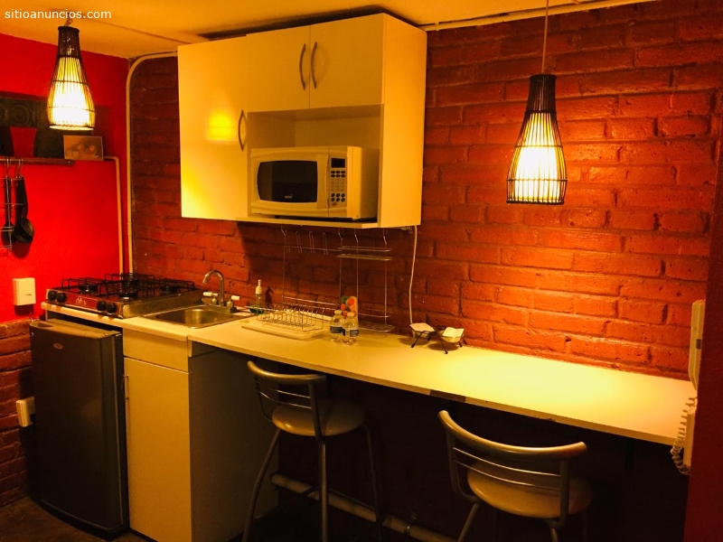 Baño completo, muebles, sillones, mesa, desayunador, microondas, frigobar, LUZ AGUA GAS E INTERNET incluidosServicio de Limpieza incluido