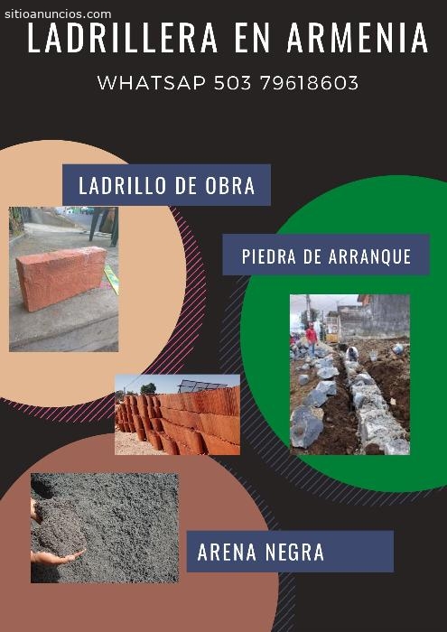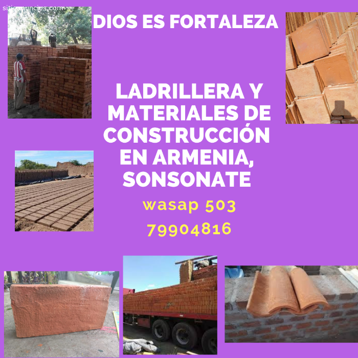 Armenia- sonsonate ladrillera el chivazo en armenia y transporte materiales de primera clase le ofrecemos ladrillo de obra, teja de barro, grava, piedra, arena negra y blanca, transporte a domicilio y lo atendemos también en nuestra la driilera local número de teléfono de contacto 7990 4816 y 7311 5667 pudiendo a tenderle humildemente con la mano de dios - ladrillo de primera calid - Teléfono: ?50379904816 teléfono - Dirección: Armenia Armenia, SonsonateMedios de pago: efectivo