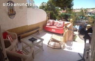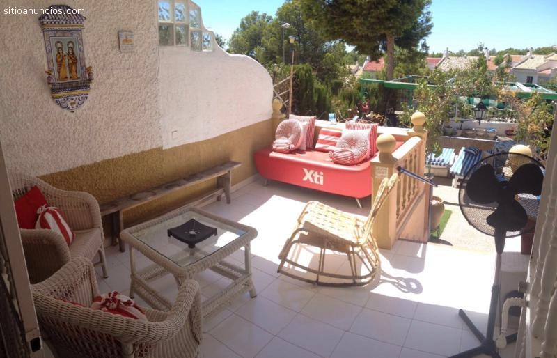 Bungalow en la Nucia 3DORM, 2 BAÑOS, TRASTERO, PARKING, A/A. SIN MUEBLES.Bungalow en la Nucia.La planta baja consta de un amplio salón con chimenea, cocina Americana equipada con electrodomésticos,aseo con ducha.Jardin delantero con zona barbacoa y zona merendero.Un cuarto destinado a Lavanderia y trastero.Jardín el la parte trasera con una amplia zona solárium.En la zona trasera una amplio Porsche. La planta alta consta de de 3 dormitorios.Dos de ellos amplios con armarios empotrados.El dormitorio principal tiene una amplia terraza desde donde se ve el mar.Las camas tienen amplias bancadas,lo cual sirve de almacenaje.El pequeño tiene literas.Hay un baño amplio con bañera y armario empotrado. Amplio Garage cerrado mas trastero y bodega de unos. Parking. A/A. Urb. Piscina, parque Inf