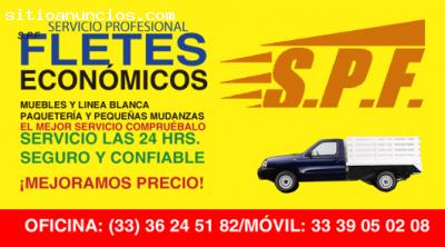 Servicio Profesional de Fletes (S.P.F.) somos una organización dedicada a la carga, transporte, envió y descarga de muebles, linea blanca, pequeñas mudanzas y paqueteria. Nuestros fletes son económicos, seguros y confiables. garantizado!! contamos con servicio las 24 HRS. Mejoramos cualquier precio en el área de GUADALAJARA y ZAPOPAN, 10 años de experiencia nos respaldan somos su mejor opción, compruébalo!!Especialistas en carga, transporte y descarga de muebles en articulos para el hogar, estamos para proporcionarte el mejor servicio y trato profesional, honesto y personalizado con cada uno de nuestros clientes, nos ponemos a sus ordenes!!