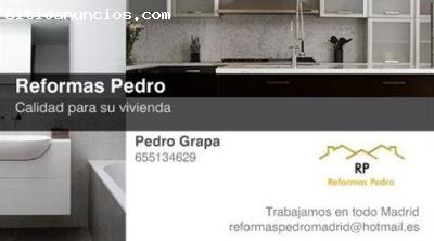 En Reformas Pedro somos especialistas en obras y reformas de viviendas, locales y oficinas en todo Madrid. Realizamos todo tipo de trabajos, desde pintura, albañilería, fontanería, electricidad, instalación de equipos de calefacción y aire acondicionado, instalación de pladur..., hasta la reforma general de viviendas, tiendas u oficinas. Nuestros trabajos son de buena calidad y nuestros precios muy razonables. Poseemos una gran experiencia conseguida a lo largo de muchos años. No le fallaremos.Página web: