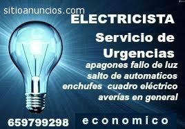 ELECTRICISTA economico en VILLAVERDEElectricidad en general. Instalaciones y Averías de todo tipo grandes o pequeñas. Profesional con amplia experiencia. Buena ejecución, rapidez, calidad, no cobro desplazamiento ni presupuesto previo sin compromiso. Urgencias. Mantenimiento. Viviendas y Comercios . Instalaciones, reformas y pequeñas reparaciones de cualquier tipo. Revisión eléctrica. Tomas de televisión y teléfono, interruptores superficie. Halógenos, lámparas, downligth, Ventiladores techo, Porteros .Derivaciones, acometidas, apagones, enchufes sin corriente, salto de automáticos y diferenciales, fallos en luz .Montaje de todo tipo de lámparas e iluminación. Tv y Teléfono. Refuerzo y duplicado de líneas e interruptores, conmutaciones….Prestamos servicio en todo Villaverde: San Andrés, San Cristóbal, Butarque, Los Rosales, Los Ángeles 659799298