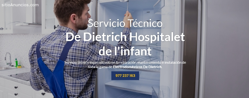 Si su electrodoméstico De Dietrich deja de funcionar llámenos y de parte de nuestro Servicio Técnico De Dietrich especializados en la reparación de todo tipo de electrodomésticos de la marca De Dietrich, prestamos un servicio de calidad para la reparación de Neveras De Dietrich, Lavadoras De Dietrich, Secadoras De Dietrich, Lavavajillas De Dietrich, Frigoríficos De Dietrich, Hornos De Dietrich, Vitrocerámicas De Dietrich, Congeladores De Dietrich y todo tipo de electrodomésticos De Dietrich para los cuales usted pueda necesitar un servicio de urgencia en Hospitalet de l’infant, porque en nuestro Servicio Técnico De Dietrich Hospitalet de l’infant nos preocupamos por proporcionar el mejor servicio de calidad para nuestros clientes, porque sabemos que nuestros clientes se merecen lo mejor dPágina web: