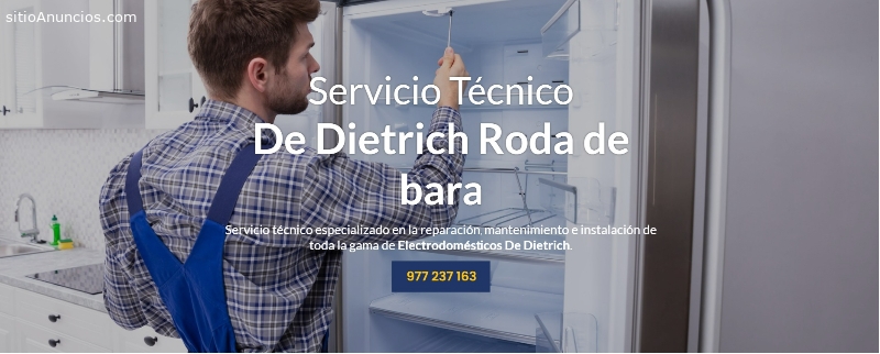 Si su electrodoméstico De Dietrich deja de funcionar llámenos y de parte de nuestro Servicio Técnico De Dietrich especializados en la reparación de todo tipo de electrodomésticos de la marca De Dietrich, prestamos un servicio de calidad para la reparación de Neveras De Dietrich, Lavadoras De Dietrich, Secadoras De Dietrich, Lavavajillas De Dietrich, Frigoríficos De Dietrich, Hornos De Dietrich, Vitrocerámicas De Dietrich, Congeladores De Dietrich y todo tipo de electrodomésticos De Dietrich para los cuales usted pueda necesitar un servicio de urgencia en Roda de bara, porque en nuestro Servicio Técnico De Dietrich Roda de bara nos preocupamos por proporcionar el mejor servicio de calidad para nuestros clientes, porque sabemos que nuestros clientes se merecen lo mejor de manos de nuestroPágina web: