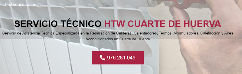Cuando su aparato de Aire Acondicionado Htw le cause problemas es importante que contacte con un Servicio Técnico Htw profesional como nuestro Servicio Técnico Htw Cuarte de Huerva, pues contamos con una amplia red de técnicos a su completa disposición conocedores de todo tipo de averías que puedan tener sus aparatos de aire acondicionado, pues cargan con una experiencia de más de 25 años en todas sus reparaciones, además, trabajamos con piezas de recambio originales de la marca Htw para garantizar un funcionamiento óptimo de su aparato de climatización del hogar, prestamos servicio a todo tipo de aparatos de aire acondicionado del tipo Split, Cassette, Conductos y Bomba de calor, por ello somos conocidos como un Servicio Técnico Htw Cuarte de Huerva profesional y comprometido con sus cliPágina web: