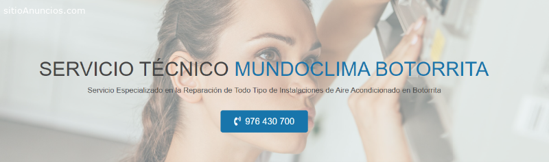 Cuando su aparato de Aire Acondicionado Mundoclima le cause problemas es importante que contacte con un Servicio Técnico Mundoclima profesional como nuestro Servicio Técnico Mundoclima Botorrita, pues contamos con una amplia red de técnicos a su completa disposición conocedores de todo tipo de averías que puedan tener sus aparatos de aire acondicionado, pues cargan con una experiencia de más de 25 años en todas sus reparaciones, además, trabajamos con piezas de recambio originales de la marca Mundoclima para garantizar un funcionamiento óptimo de su aparato de climatización del hogar, prestamos servicio a todo tipo de aparatos de aire acondicionado del tipo Split, Cassette, Conductos y Bomba de calor, por ello somos conocidos como un Servicio Técnico Mundoclima Botorrita profesional y comPágina web: