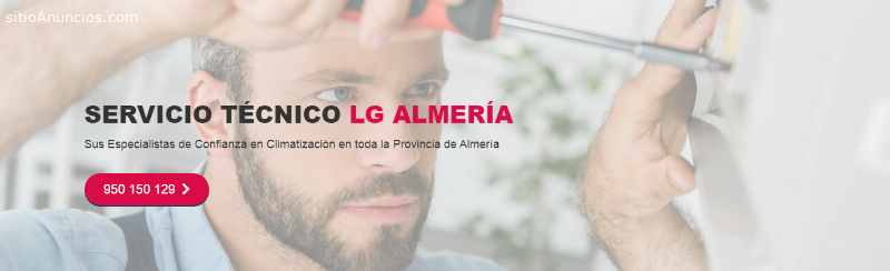 Visita nuestra web: Servicio Técnico LG AlmeriaSi su aparato de Aire Acondicionado LG dejó de funcionar, ha dado con el Servicio Técnico LG adecuado en Almeria, pues contamos con un amplio equipo de profesionales especializados en la reparación de todo tipo de equipos de climatización del Hogar, sin importar que sean Aires Acondicionados LG Tipo Split, Conductos, Cassette o Bomba de calor, en nuestro Servicio Técnico LG Almeria garantizaremos el correcto funcionamiento de su equipo de Aire Acondicionado porque la profesionalidad y el compromiso con el clientes es nuestra prioridad, por eso somos el Servicio Técnico LG Almeria líder en toda la ciudad