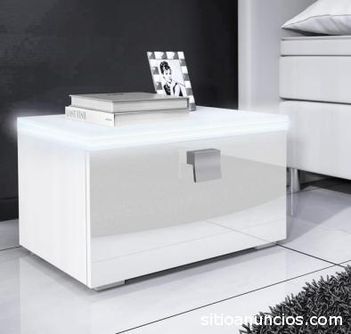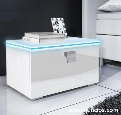 Mesita de noche alicante con LED, ideal para combinar con el resto de productos Alicante (cómoda y cama de matrimonio). Dale un aire moderno a tu habitación con esta mesita de noche de línea sencilla pero llamativo color blanco. Luces de leds incluidas.Ver las dimensiones de la mesita de noche en la imagen del dibujo.