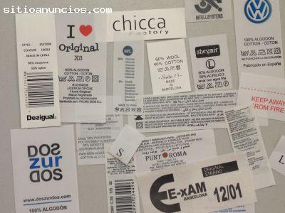 Fabricamos etiquetas de muy buena calidad y precios muy asequibles, etiquetas personalizadas para marcar la ropa, etiquetas de algodón, etiquetas cartulina, tejidas o bordadas, para identificar sus prendas. Solo tiene que escoger el tipo de etiqueta que quiera, el tipo de letra, los colores para su diseño y el dibujo que desee y nosotros le elaboramos la etiqueta a su medida.Nuestras etiquetas le proporcionarán una rápida identificación de sus prendas. También disponemos de complementos tales como brillantes, tachuelas, vinilos o cintas estampadas y lisas.
