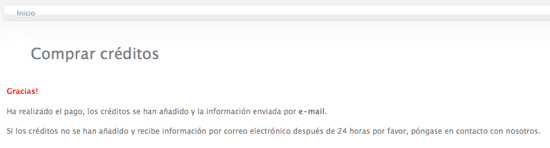 Pago realizado con éxito. En tu cuenta de usuario verás los créditos adquiridos, sólo tendrás que utilizarlos en tus publicaciones, actualizando los anuncios ya publicados o publicando anuncios nuevos.