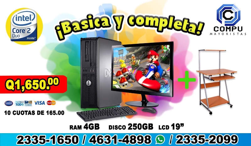 COMPUTADORAS PARA ACADEMIAS, OFICINAS, FERRETERÍAS, HOSPITALES, COLEGIOS, INSTITUTOS, COMPUTADORAS DELL+MUEBLE, A TAN SOLO Q 1,650!!! TEl: 2335-2099//5701-6630, Memoria 04Gb de Ram/250 Disco Duro/Lcd 19 Nuestros Equipos Cuentan CON 06 MESES DE GARANTÍA, ESTAMOS en el Centro Comercial Zona 4 Local 113, Primer Nivel, FRENTE A BURGER KING....Página web: