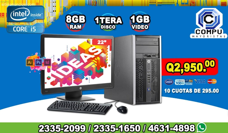POTENTES COMPUTADORAS HP COREi5, 08GB RAM, 1TERA DISCO DURO, 01GB DE VIDEO, LCD 22P A Q 2,950.00, Llevatelas en Visa Cuotas o bien Cuotas Credomatic, de Q 259.00 TEL: 2335-2099//4266-6510 (WHATSAPP) Ven por la Tuya,, Gran Centro Comercial Zona 4 Local 113, Primer Nivel... Tel: 2335-2099//2335-1650Página web: