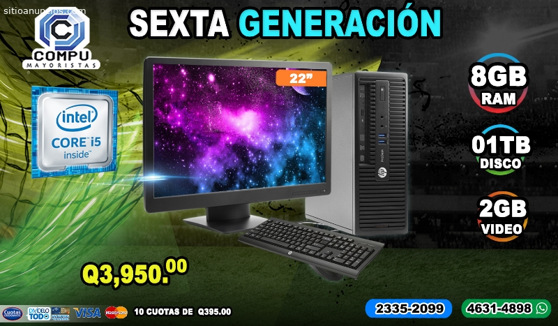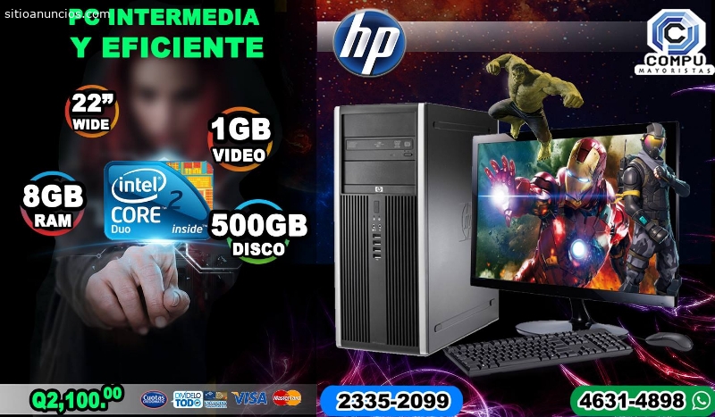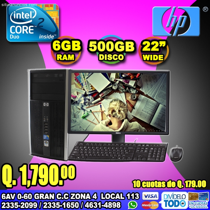 POTENTES COMPUTADORAS HP CORE2DUO, 08GB RAM, 500 DISCO DURO, 01GB DE VIDEO, LCD 22P A Q 2,100.00, Llevatelas en Visa Cuotas o bien Cuotas Credomatic, de Q 210.00 TEL: 2335-2099//4266-6510 (WHATSAPP) Ven por la Tuya,, Gran Centro Comercial Zona 4 Local 113, Primer Nivel... Tel: 2335-2099//2335-1650Página web:
