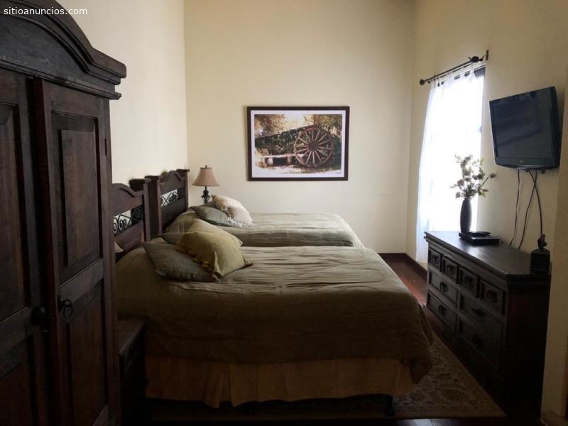 Citymax Antigua renta excelente apartamento en uno de los sector exclusivos de La Antigua Guatemala, Barrio Antonelli, área de juego de niños, áreas comunes jardinizadas, plaza central para disfrutar con la familia ese ambiente tranquilo, fresco y seguro, parqueo de visitas, seguridad por medio de cámaras 24/7, garita de control de acceso y pozo propio.Apartamento: 2 habitaciones (3 camas matrimoniales), 2 baños, sala, comedor cocina, línea blanca, totalmente amueblado.