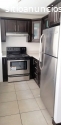 Cocina con top de cuarzo y lavandería equipados.