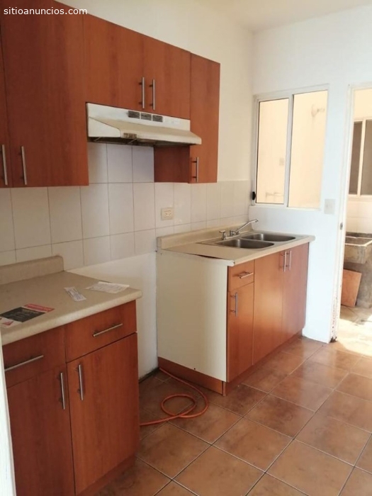 garaje para 2 carros, sala, comedor, cocina con gabinetes, área de lavandería con pila, baño de visitas, patio, dormitorio de servicio con baño completo,