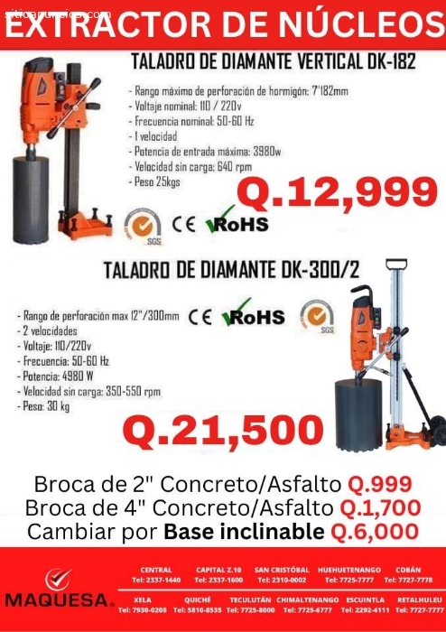 EXTRACTOR DE NÚCLEOSTALADRO DE DIAMANTE VERTICAL DK-182