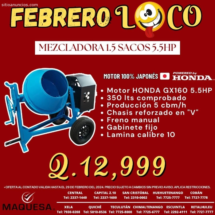 Mezcladoras Joper de 1.5 Sacos motor honda japones 100%Motor Honda 5.5 HPJapones ?