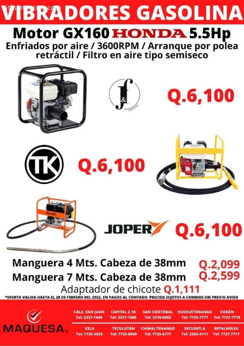 Vibrador Gasolina MOTOR 100% JAPONÉSMotor Honda GX160 5.5HP